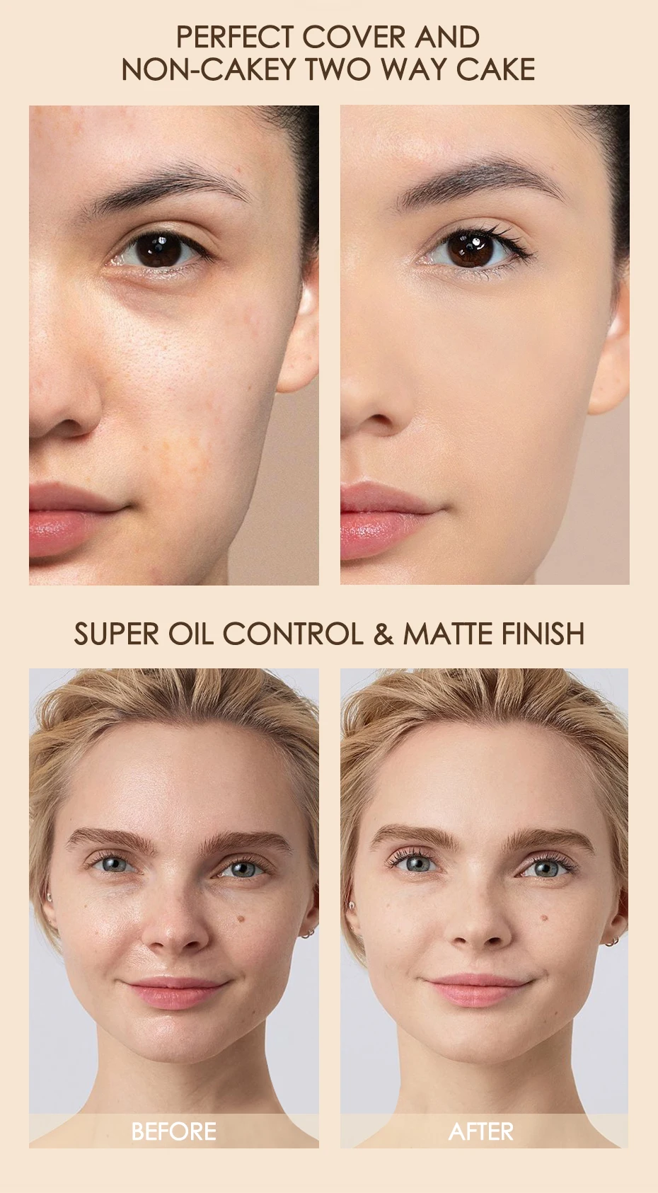High coverage, it can cover the blemish and pores of skin surface, oil-control, form smooth and flawless matte makeup finish.