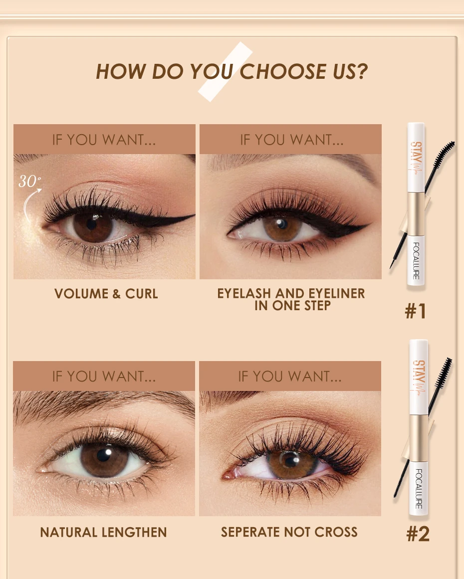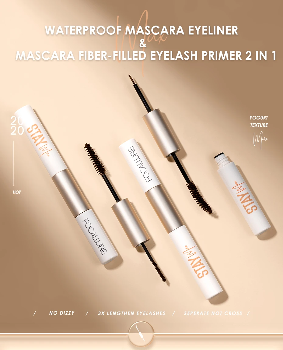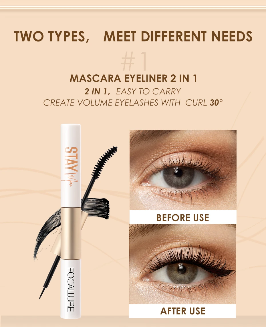 FOCALLURE 2 IN 1 Mascara Eyeliner & Mascara Fiber Eyelash primer Waterproof Lengthening Lash Curling Eyelash Cosmetics Makeup