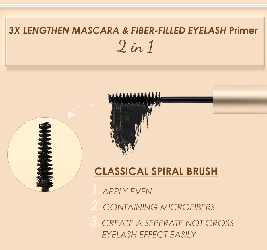 Use eyelash primer first, then use mascara, if necessary, then use eyelash primer again, eyelash lengthen effect will be more obvious